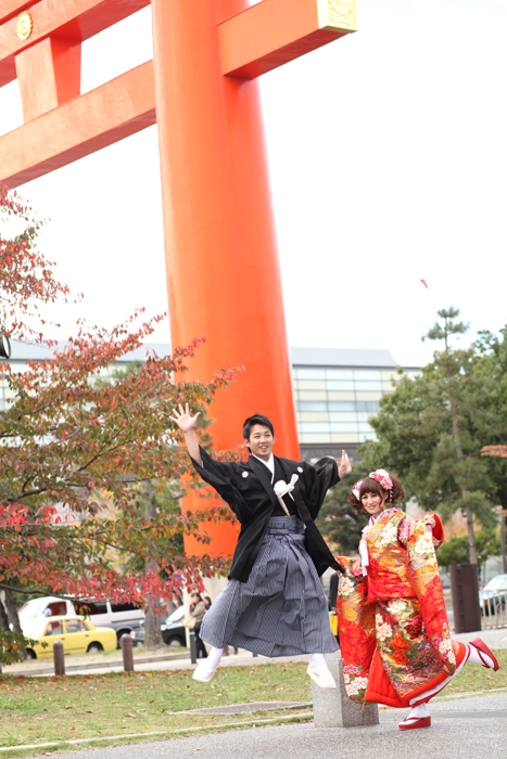 中でも特に格調高い「岡崎」の地で撮影。西にはよどみなく流れる鴨川、北に平安京の大極殿を模した平安神宮を配し、